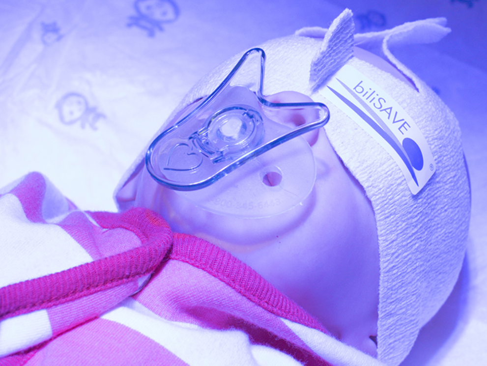 Anyone who has once taken care of the babies during the photo therapy session is familiarwith the following situation: the babies are restless and the eye protection is constantly slipping off. The eyes of the babies are endangered! At the same time, the head is an important irradiation area – it has large surface and therefore can effectively support the degradation of bilirubin.