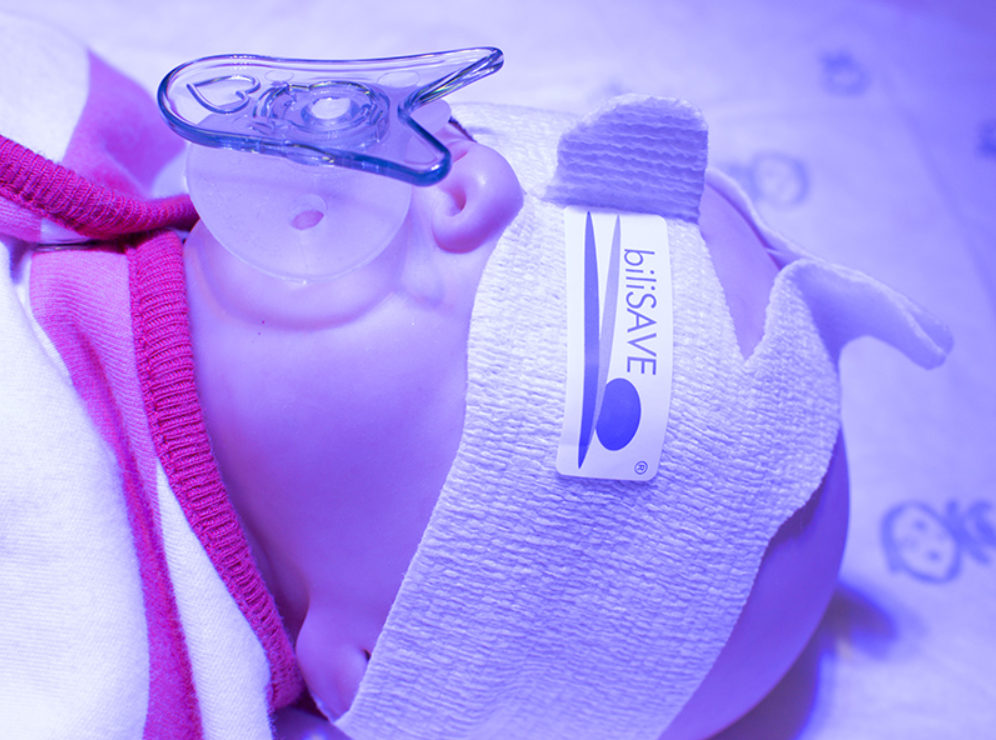 The Velcro fasteners can be adjusted individually – glue points on the child‘s head are no longer necessary! That is how biliSAVE® adapts to any shape of the head and, in addition to effectively protecting the eyes, ensures the greatest possible radiance surface. biliSAVE® is latex-free.