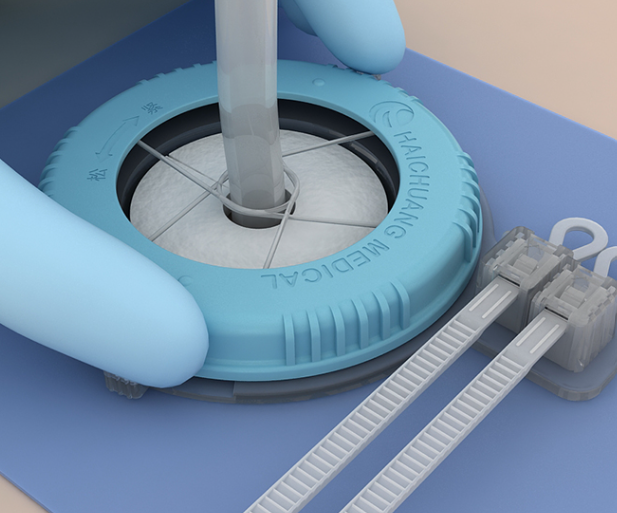 The fixer is suitable for the fixation of drainage catheters after various types of surgery, protects the wound, and smoothens the flow. It does not need to puncture the needle on the skin, completely changes the traditional “skin fixation”, and reduces the risk of catheter displacement and accidental extubation.
